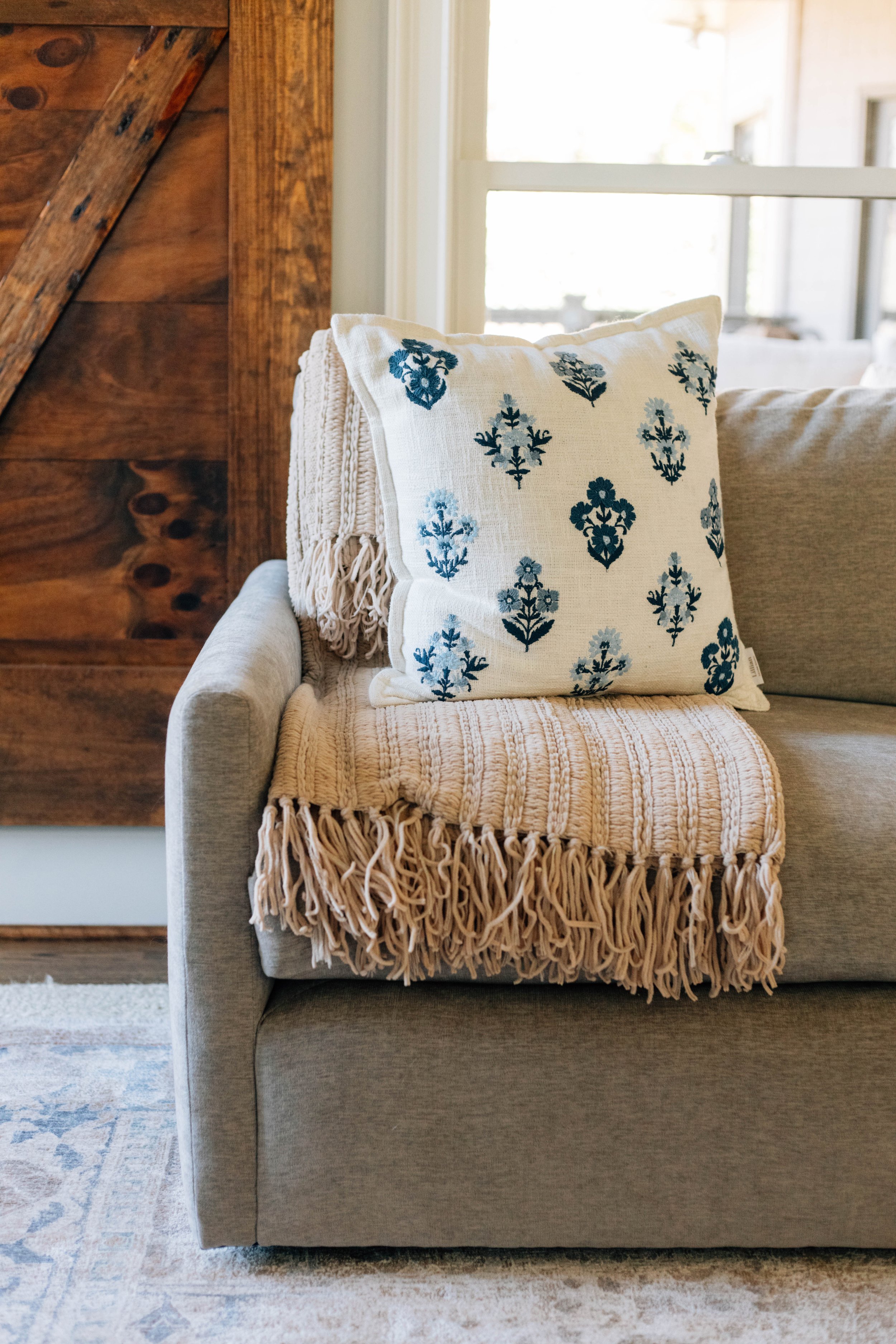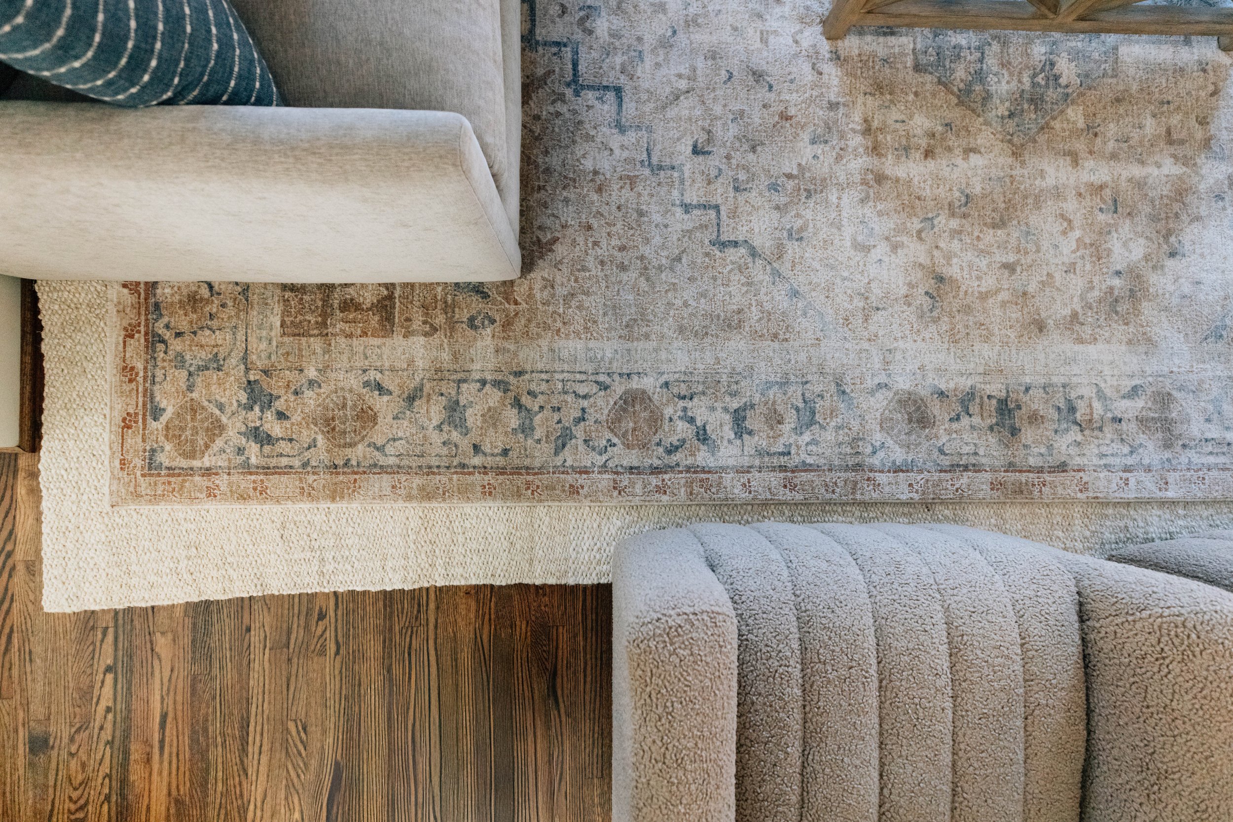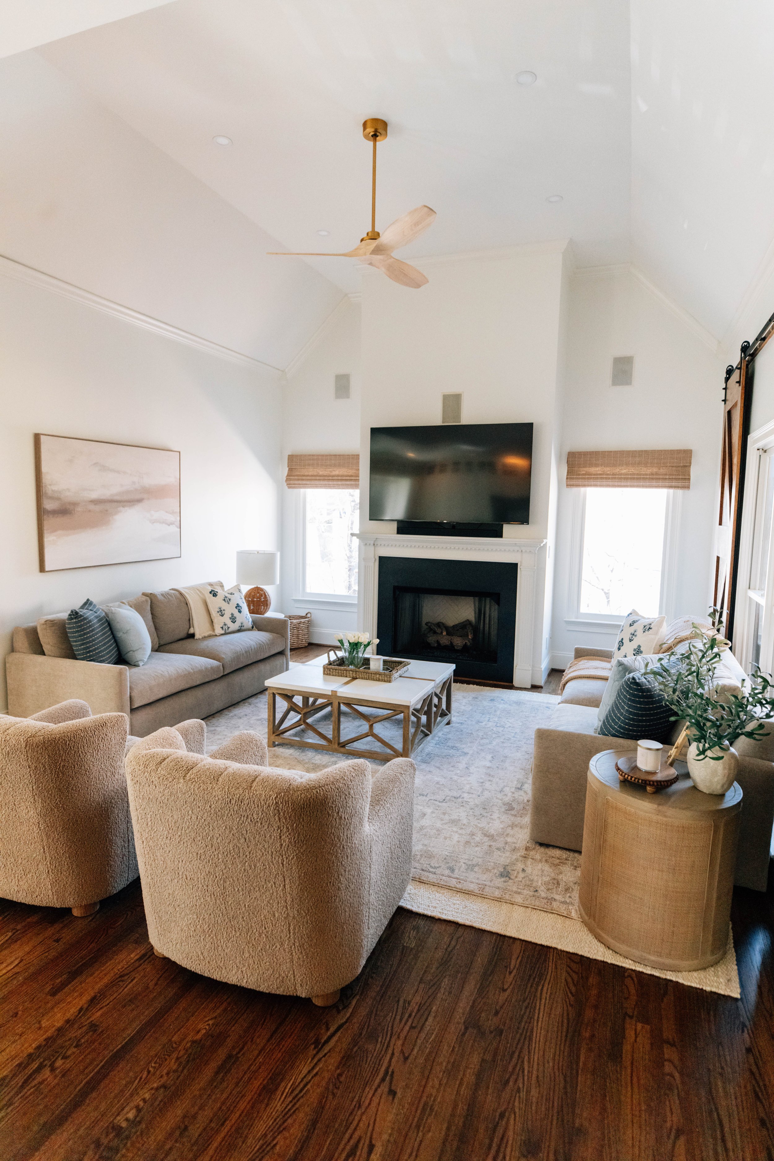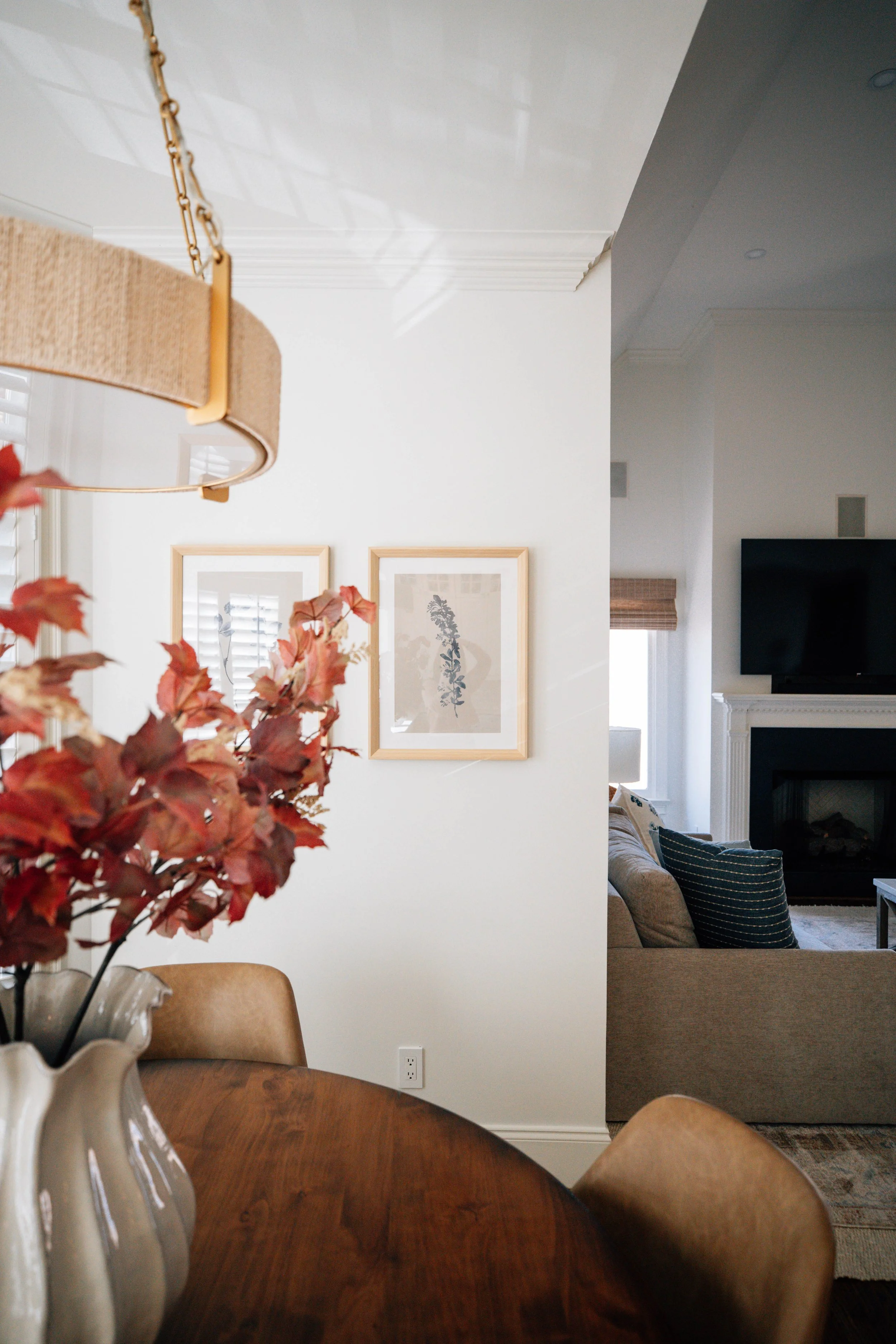 From the moment you step inside, the goal was to create a sense of cohesion that carries effortlessly from one space to the next. The entry introduces the home’s foundation—soft neutrals, warm wood tones, and subtle hints of blue—setting a welcoming, elevated tone without feeling overly formal.